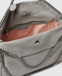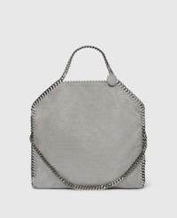 Item 234387W91321220U An enchanting display of duality, this Falabella fold-over tote bag can be styled in two ways – held in one hand like a classic tote or worn across the body. Crafted consciously from a grained vegan alternative to leather and laced with GOTS-certified cotton, the grey tote bag effortlessly complements the Stella woman’s dynamic moods and days. - Colour: Grey - Medium steel grey - Comfortably fits all tablets and 15" laptops alongside daily essentials - Matte vegan Shaggy Deer fabric with semi-gloss grain - Signature ruthenium recycled brass and aluminium diamond-cut chain - Waxed GOTS-certified organic cotton lacing - Two top handles, and one shoulder strap - One main compartment - One internal slip pocket - Magnetic snap fastening - Engraved ruthenium logo medallion charm - Recycled polyester monogram lining - Made in Italy Product Care & Fit Advice - Care: Use a soft damp cloth with a small amount of demineralised water (likewise for ironing) and apply to all the material. Leave the bag to dry. Avoid scrubbing to prevent damaging the surface of the bag. As this accessory is made from very delicate fabric, we recommend handling with care and avoiding contact with any sharp objects, jewellery, or rough surfaces. When not in use, always store the item in its protective bag. - Composition: Main fabric: 55% polyester, 45% GRS-certified Newlife™ post-consumer recycled polyester, Trims: 70% solventless polyurethane, 30% post-consumer recycled polyester, Lacing: 100% GOTS-certified organic cotton with corn starch wax coating, Handle/strap: 100% recycled brass, Body chain: 100% aluminium, Medallion: 100% zamac, Magnet: 100% stainless steel, Lining: GRS-certified post-consumer recycled polyester - Fits all tablets and 15" laptops. - Size: 37 x 36 x 9cm / 14.5 x 14 x 3.5in. - Handle drop: 11cm - Strap length: 22cm - Weighs approximately 0.85kg - This tote can be worn two ways, folded over as a shoulder bag or as a handheld tote. - All of our shoes and accessories are made from non-leather materials in keeping with our cruelty-free ethos.