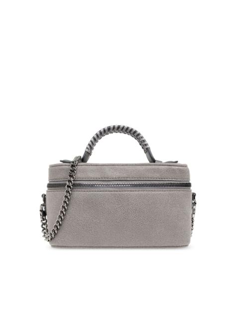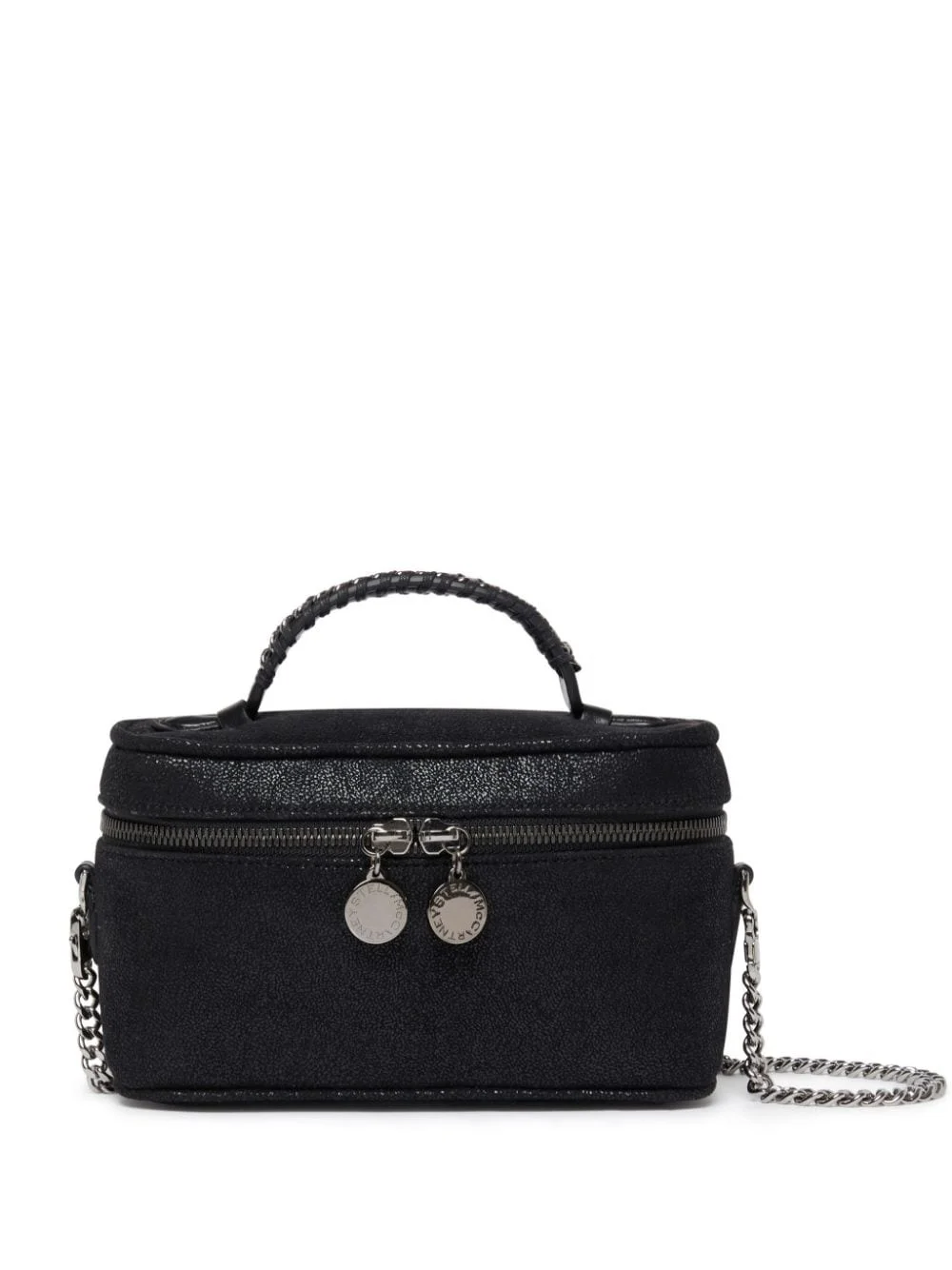 Falabella vanity crossbody bag Highlights - Black - Faux leather - Metallic sheen - Signature diamond-cut chain-link trim - Single rolled top handle - Chain-link shoulder strap - Front two-way zip fastening - Branded zip puller - Main compartment - Internal patch pocket - Full lining - Silver-tone hardware Made in Italy Composition Outer: Polyester 100%, Organic Cotton 100% Lining: Recycled Polyester 100% SIZE & FIT Measurement DEPTH 3.14 in(8 cm) HEIGHT 4.33 in(11 cm) STRAP 21.25 in(54 cm) WIDTH 7.48 in(19 cm)