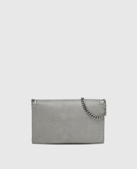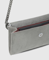 Item 581238W91321220U Compact and versatile, the Falabella wallet crossbody bag is responsibly made from our specially created matte Shaggy Deer fabric with a semi-gloss grain, a cruelty-free alternative to animal leather. The vegan bag includes an interior slip pocket and is fully lined with recycled materials. - Colour: Grey - Medium steel grey - Comfortably fits all phones and all wallets alongside small daily essentials - Matte vegan Shaggy Deer fabric with semi-gloss grain - Signature ruthenium recycled brass and aluminium diamond-cut chain - Waxed GOTS-certified organic cotton lacing - One shoulder strap - One main compartment - One internal slip pocket - Magnetic snap fastening - Engraved ruthenium logo medallion charm - Fully lined with recycled materials - Made in Italy Product Care & Fit Advice - Care: Use a soft damp cloth with a small amount of demineralised water (likewise for ironing) and apply to all the material. Leave the bag to dry. Avoid scrubbing to prevent damaging the surface of the bag. As this accessory is made from very delicate fabric, we recommend handling with care and avoiding contact with any sharp objects, jewellery, or rough surfaces. When not in use, always store the item in its protective bag. - Composition: Main fabric: 55% polyester, 45% GRS-certified Newlife™ post-consumer recycled polyester, Trims: 70% solventless polyurethane, 30% post-consumer recycled polyester, Lacing: 100% GOTS-certified organic cotton with corn starch wax coating, Strap and chain: 100% recycled brass, Medallion: 100% zamac, Magnet: 100% stainless steel, Lining: GRS-certified post-consumer recycled polyester - Fits all phones and all wallets. - Size: 22 x 14 x 2.5cm / 8.6 x 5.5 x 1in. - Strap length: 52cm - Weighs approximately 0.38kg - All of our shoes and accessories are made from non-leather materials in keeping with our cruelty-free ethos.