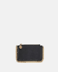 Item 422364W93551000U Stay organised with our cruelty-free Falabella cardholder. The cardholder is consciously crafted from our grained vegan Shaggy Deer fabric with an iconic Falabella chain on its border. - Colour: Black - Midnight black - Matte vegan Shaggy Deer fabric with semi-gloss grain - Signature gold recycled brass and aluminium diamond-cut chain - Waxed GOTS-certified organic cotton lacing - Zip coin pocket - Four card slots - Press stud fastening - Engraved gold zamac logo medallion charm - Made in Italy Product Care & Fit Advice - Care: Use a soft damp cloth with a small amount of demineralised water (likewise for ironing) and apply to all the material. Leave the bag to dry. Avoid scrubbing to prevent damaging the surface of the bag. As this accessory is made from very delicate fabric, we recommend handling with care and avoiding contact with any sharp objects, jewellery, or rough surfaces. When not in use, always store the item in its protective bag. - Composition: Main fabric: 55% polyester, 45% GRS-certified Newlife™ post-consumer recycled polyester, Trims: 70% solventless polyurethane, 30% post-consumer recycled polyester, Lacing: 100% GOTS-certified organic cotton with corn starch wax coating, Chain: 100% aluminium, Medallion: 100% zamac, Magnet: 100% stainless steel, Lining: GRS-certified post-consumer recycled polyester - Size: 14.5 x 9cm / 5.7 x 3.5in. - Weighs approximately 0.078kg - All of our shoes and accessories are made from non-leather materials in keeping with our cruelty-free ethos.