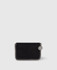 Item 7P0073W91321000U Stay organized with our cruelty-free Falabella cardholder, consciously crafted from our metallic, grained vegan Shaggy Deer fabric and outlined with an iconic chain around its border. - Color: Black - Matte Shaggy Deer vegan leather alternative with a semi-gloss grain - Signature recycled brass and recyclable aluminum diamond-cut chain - Waxed GOTS-certified organic cotton lacing - Coin pocket - Four card slots - Zipper fastening - Engraved logo medallion made from zero-waste zamak - Fully lined with recycled materials - Made in Italy - All of our shoes and accessories are made from non-leather materials in keeping with our cruelty-free ethos. Product Care & Fit Advice Care: Spot clean only with soft damp cloth. Composition: 100% polyester - Fit: Comfortably fits up to four cards. - Size: 4.7 x 3.1 x 0 in - Weighs approximately: 0.6Kg