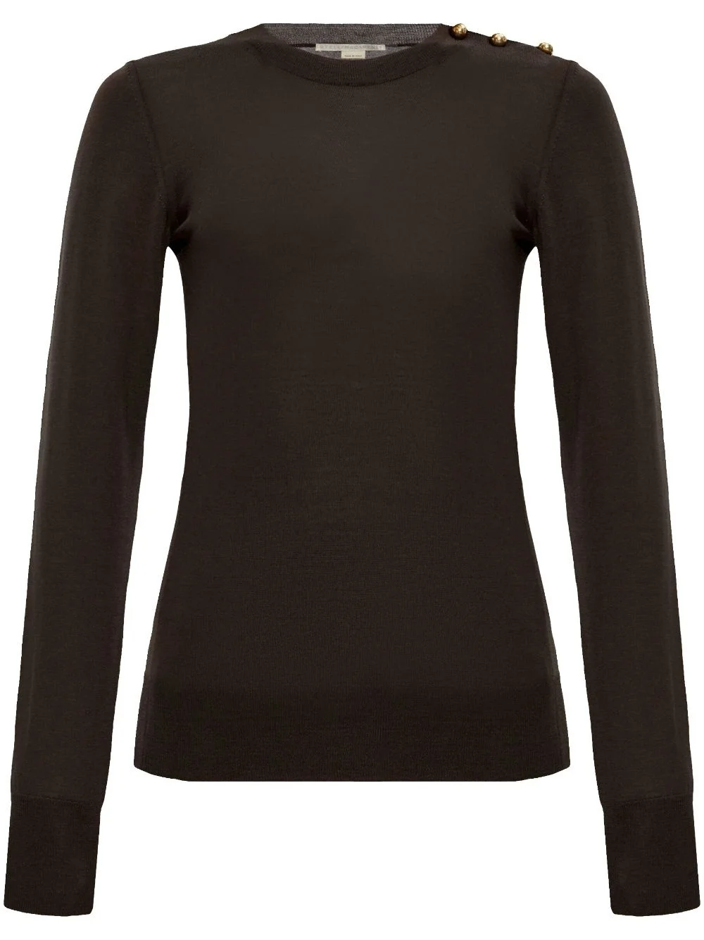 fine-knit wool jumper Highlights - Coffee brown - Wool - Fine knit - Ribbed-knit edge - Gold-tone buttons - Crew neck - Button fastening at the shoulder - Long sleeves - Straight hem Made in Italy Composition Wool 100%