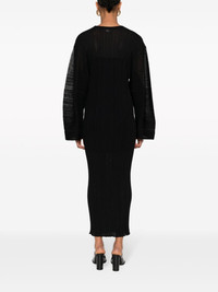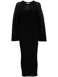 fine ribbed midi dress Highlights - Black - Fine ribbed knit - Semi-sheer panels - Rounded collar - Drop shoulder - Long sleeves - Internal logo tag - Mid-length - Straight hem - Slip-on style Made in Italy Composition Viscose 84%, Polyamide 16% SIZE & FIT Model measurements Height 5 ft 10 in(1.77 m) Bust/Chest 33.07 in(84 cm) Hips 37 in(94 cm) Waist 24.8 in(63 cm) Measurement LENGTH 50.39 in(128 cm) WAIST 31.88 in(81 cm) SLEEVE LENGTH 27.55 in(70 cm) HIPS 36.61 in(93 cm) FittingInformation Designed for a slim fit that sits just away from the body offering a close yet comfortable fit Made with a midweight knit, this piece offers some stretch This piece fits true to size – take your usual size Washing instructions Dry Clean Only