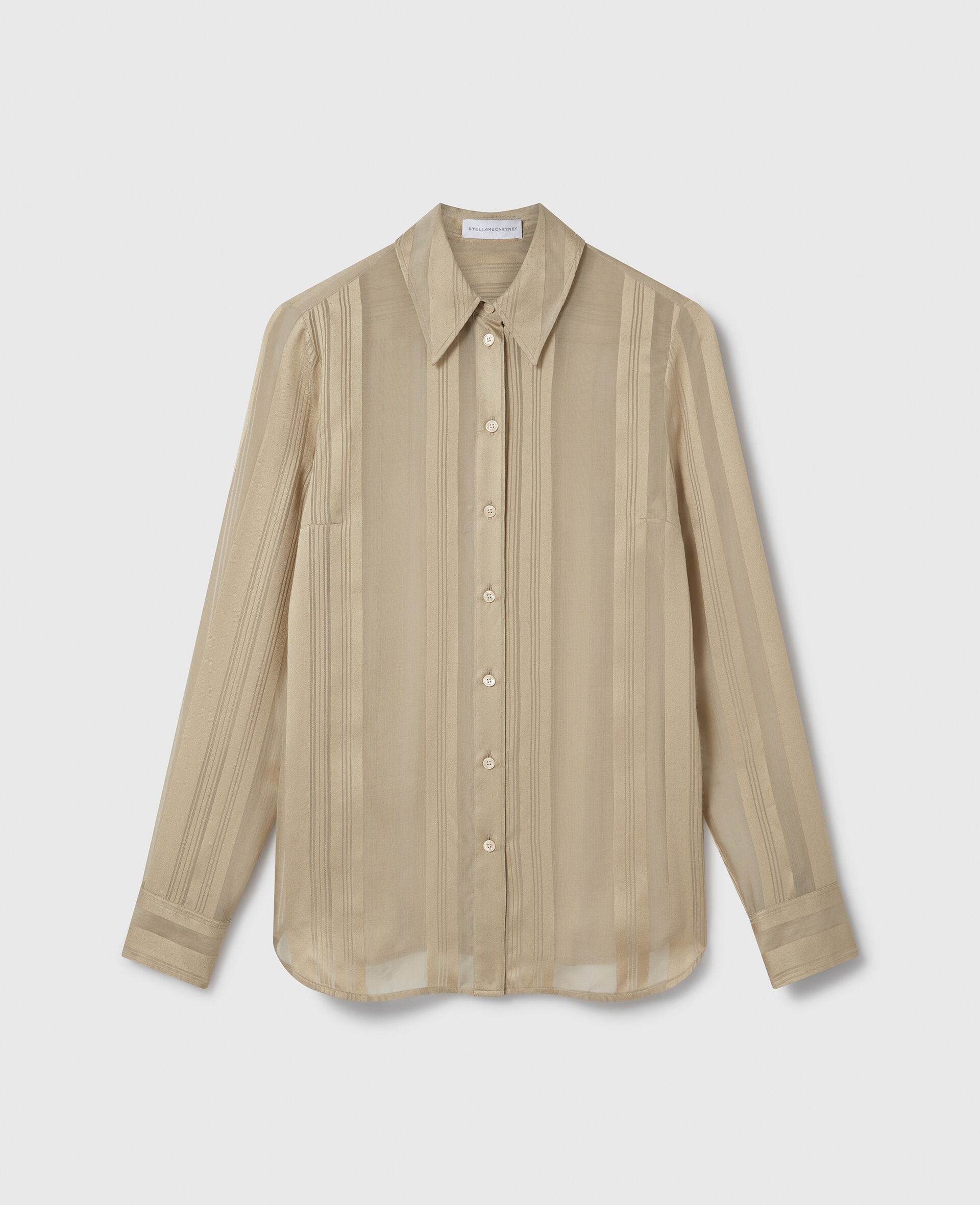 Item 6201553FJ2593410 A sensual take on a classic men’s shirt, this fitted silhouette is crafted from GOTS-certified organic silk with contrasting opaque satin and sheer chiffon panels. Floating over the body, the long-sleeve shirt is topped with a pointed collar and finishes on a straight-cut hem. - Color: Beige - Satin and silk chiffon paneling - Semi-sheer - Pointed collar - Buttoned cuffs - Long sleeves - Button fastening - Made in Italy Product Care & Fit Advice - Care: Dry clean only - Composition: 100% Silk - Fit: Regular fit - Sizing: Take your usual size - Model wears a size 40 IT or 8 UK