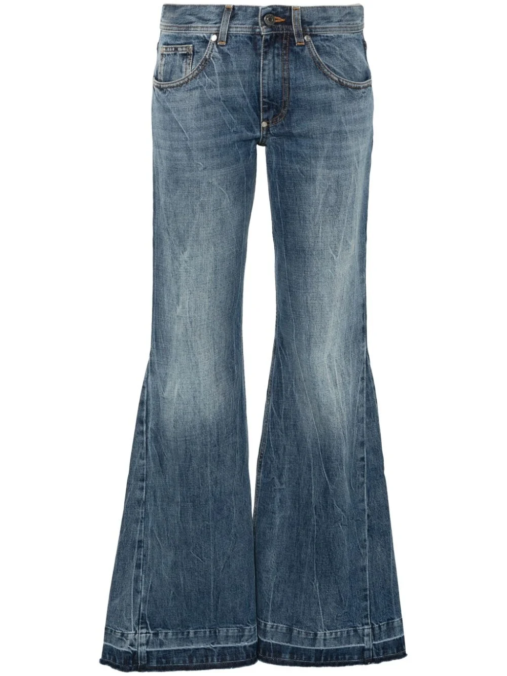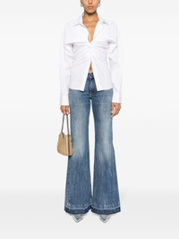 mid-rise flared jeans Highlights - Indigo blue - Cotton - Washed denim - Contrast stitching - Whiskering effect - Logo-engraved silver-tone hardware - Logo patch to the rear - Mid-rise - Flared leg - Classic five pockets - Belt loops - Front button and zip fly fastening - Unlined Made in Italy Composition Outer: Cotton 100%, Polyester 75%, Viscose 25% Lining: Polyester 57%, Cotton 40%, Viscose 3% SIZE & FIT Model measurements Height 5 ft 10 in(1.78 m) Bust/Chest 33.07 in(84 cm) Hips 36.61 in(93 cm) Waist 24.8 in(63 cm) FittingInformation Designed with a flared hem, these jeans allow for a close fit at the waist with a slim fit over the leg and widening towards the hem Sturdy and hard-wearing, this denim piece offers no stretch This piece fits small – take one size up
