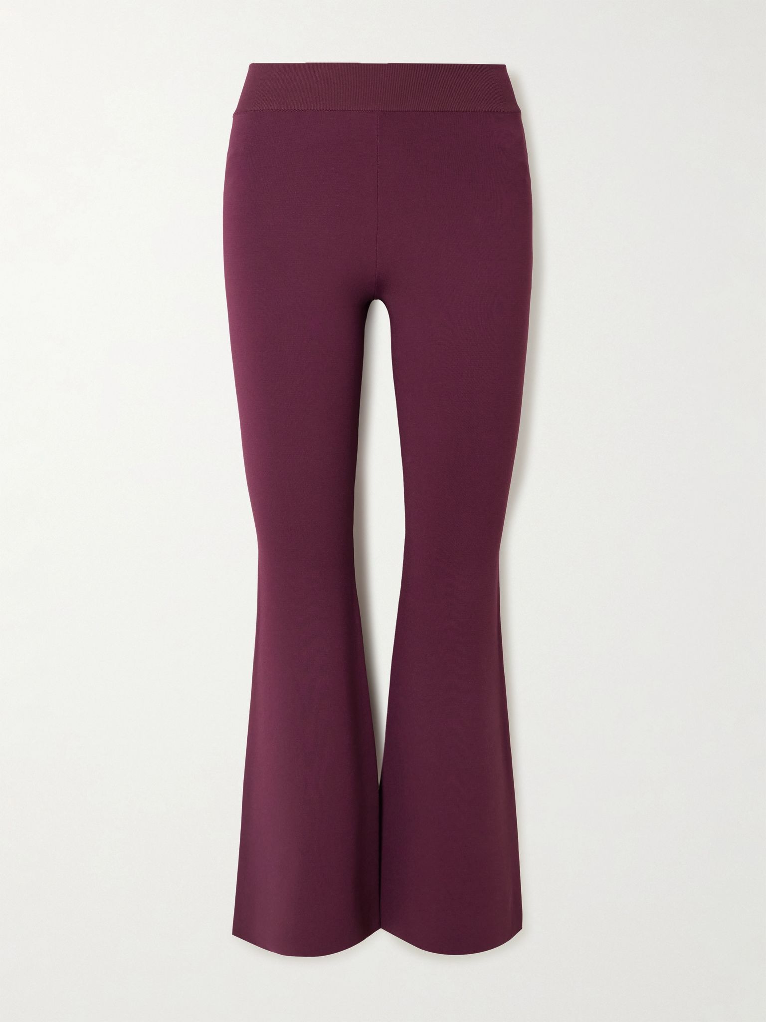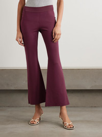 Stella McCartney's pants are designed with slim legs that kick out to flared hems. Made from jersey knitted from traceable and certified viscose, they have a high-rise, flat elasticated waist that's super comfortable. Style yours with the label's signature platform brogues. Lower-Impact Materials. This product is made using at least 50% lower-impact materials or ingredients. Find out more about our NET SUSTAIN criteria here. Size & Fit - Fits true to size, take your normal size - High-rise, designed for a slim fit with a flared hem - Cropped length - Mid-weight, stretchy fabric - Model is 175cm/ 5'9" and is wearing a size XSmall Model measurements: - Bust: 81cm/ 32" - Waist: 62cm/ 24.5" - Hip: 89cm/ 35" Details & Care - Burgundy jersey - Pull on - 83% viscose, 17% polyester; trim: 63% viscose, 23% polyamide, 12% polyester, 2% elastane - Dry clean - Designer color: Bordeaux