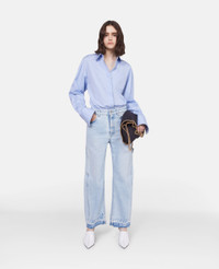 - Colour: Sky Blue - Light sky blue - GOTS-certified organic cotton poplin - Point collar - Long sleeves with button cuffs - Dropped shoulders - Button-through fastening - Left chest patch pocket - Made in Italy Product Care & Fit Advice - Care: Dry clean only - Composition: 100% organic cotton - Fits true to size - Designed for an oversized fit - Lightweight, non-stretch fabric