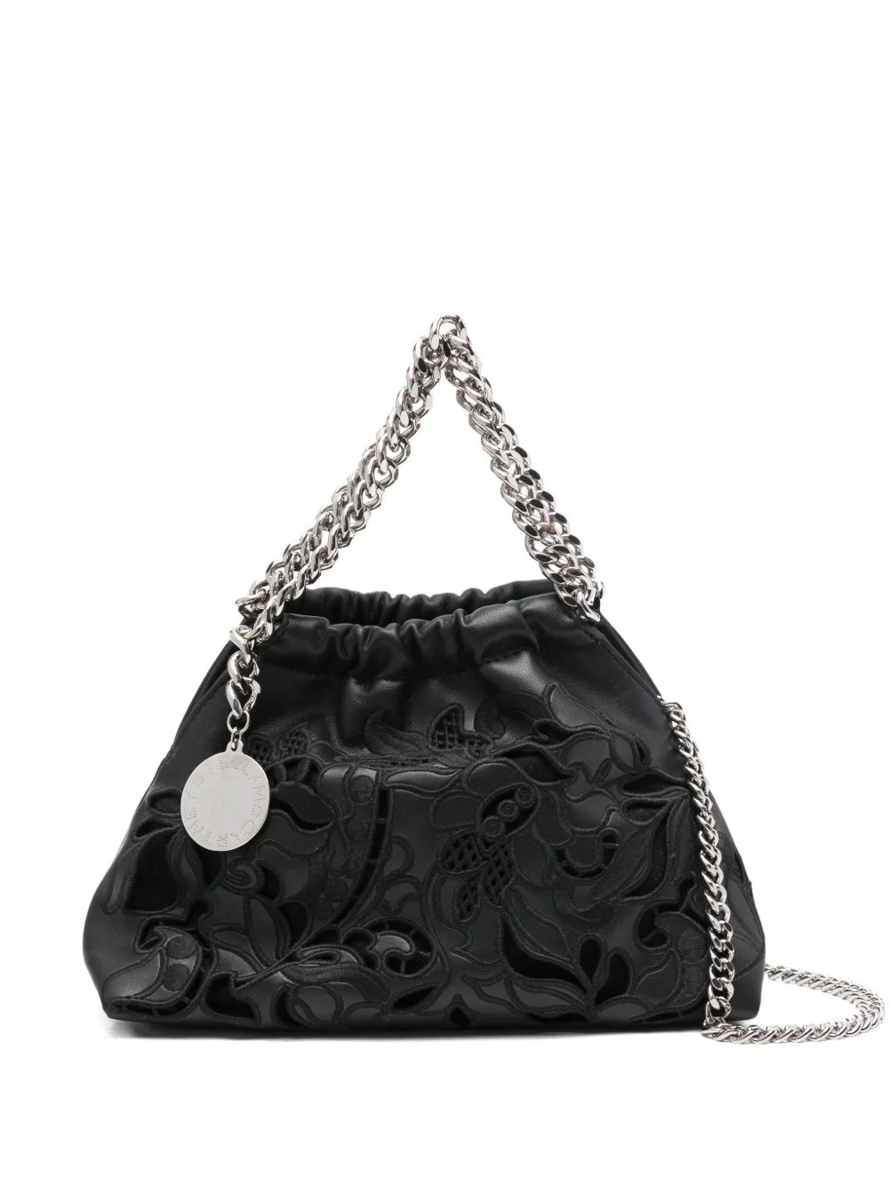 floral-embellishment tote bag Highlights - Black - Floral detail - Chain strap - Drawstring fastening - Logo charm - Top handle - This piece comes complete with a protective dust bag. Made in Italy Composition Outer: Polyester 100%, Polyurethane 100% Lining: Polyamide 100% SIZE & FIT Model measurements Height 5 ft 10 in(1.78 m) Bust/Chest 33.46 in(85 cm) Hips 36.22 in(92 cm) Waist 23.22 in(59 cm) Measurement DEPTH 3.93 in(10 cm) HEIGHT 6.29 in(16 cm) WIDTH 9.05 in(23 cm) HANDLE 3.93 in(10 cm)