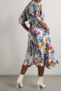 EDITORS'NOTES Stella McCartney's midi dress is printed with a garden's worth of vibrant florals. Made from crepe, it has a shirt-style placket and buttons along the sleeves that allow you to create cold-shoulder cutouts. The relaxed shape is tempered by waist-cinching ties and falls to a slightly asymmetric hem. SIZE & FIT - Fits true to size, take your normal size - Designed for a slightly loose fit, use the tie belt to cinch in at the waist - Lightweight, slightly stretchy fabric - Model is 180cm/ 5'11" and is wearing a UK 44 DETAILS & CARE - Multicolored crepe - Partially concealed button fastenings along front - 96% viscose, 4% elastane - Dry clean