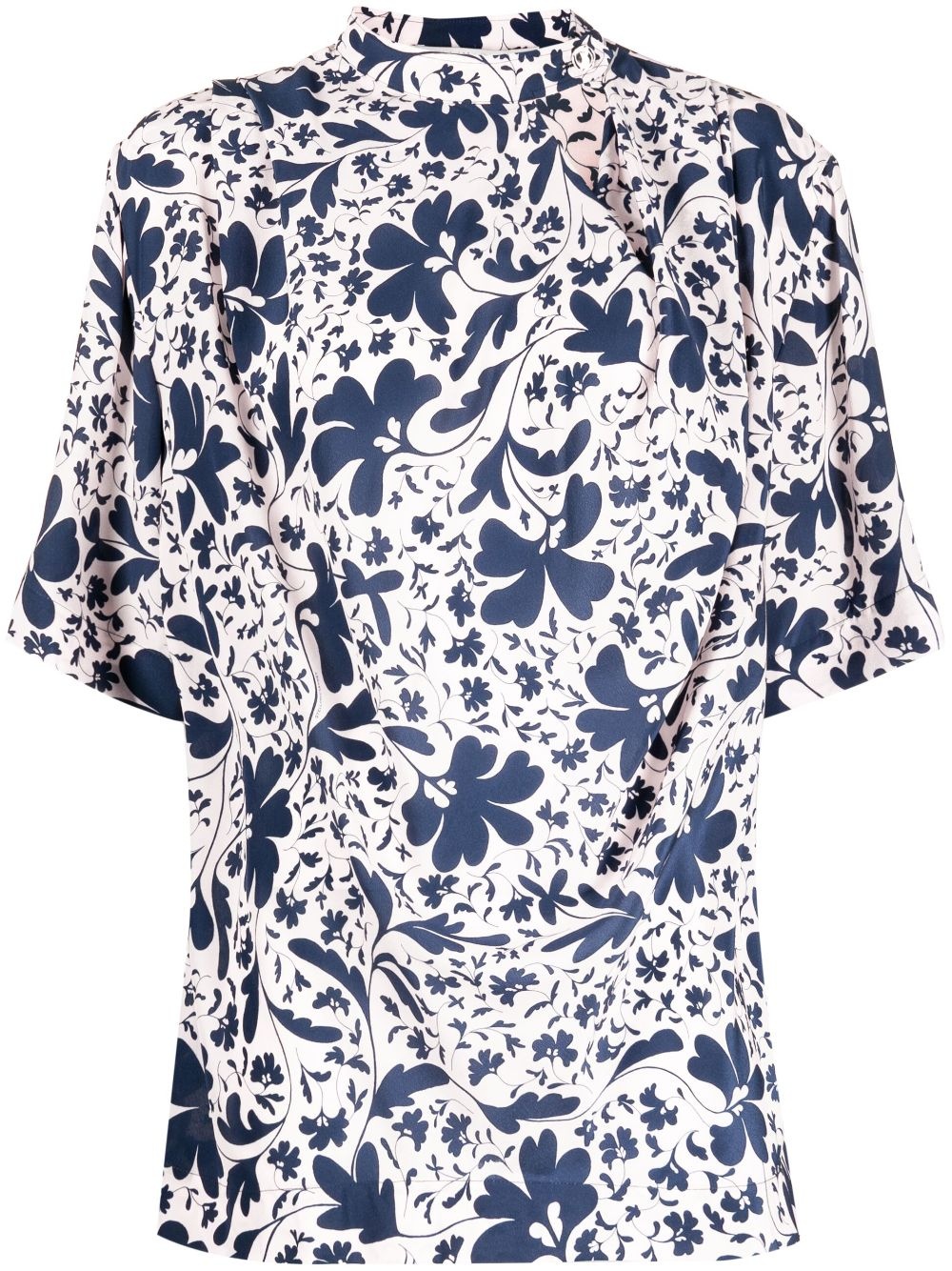 floral-print silk blouse