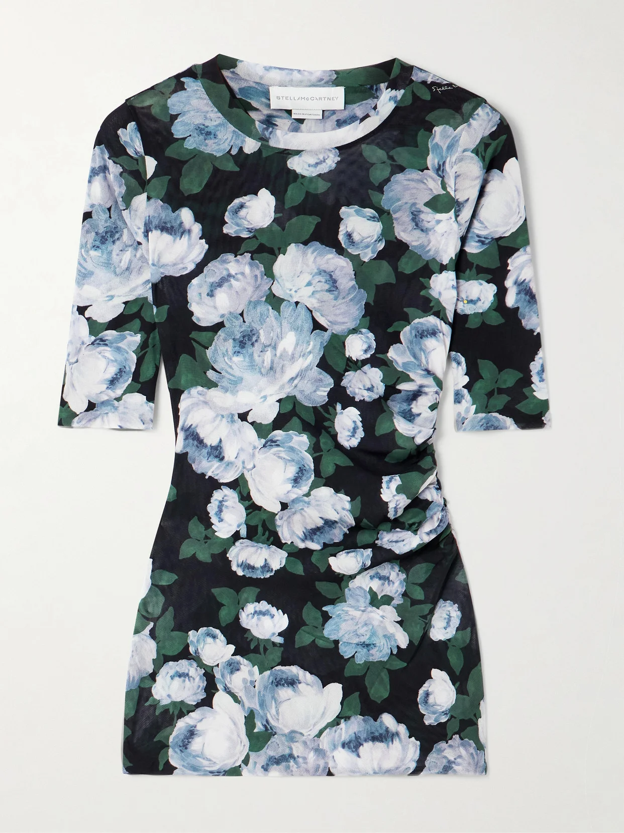 Stella McCartney's top is cut from mesh printed with dappled, watercolor-like blooms, which were originally hand-painted in the brand's London atelier. It has a classic crew neckline, three-quarter-length sleeves and is gently ruched across the waist.