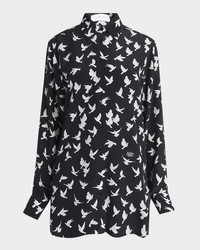 - Stella McCartney shirt featuring a flying bird print - Point collar; button front - Long sleeves; button cuffs - Oversized fit - Shirttail hem - Silk - Dry clean - Made in Italy