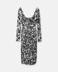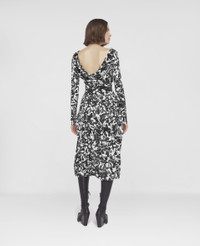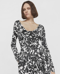 - Colour: Black & White - Midi Dress - Scoop neckline - Long sleeves, slant pockets - Sculptural balloon skirt - Frank Stella Swan inspired print all-over - Made in: Romania Product Care & Fit Advice - Care: Dry Clean - Composition: 96% Sustainable Viscose, 4% Elastane, Lining 98% Silk, 2% Elastane - Fits true to size - Designed for a regular fit - Lightweight, stretchy fabric - Model is 5 ft 11 in/1.80 m, is a size UK 10 and wears a size IT 40 (US 4/UK 10/FR 36)