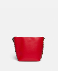 Item 7B0033W88396309U This statement-making Frayme bucket bag is consciously crafted from butter-soft Alter Mat, our vegan alternative to animal leather. The bucket bag is characterised by its softly structured silhouette, elevated with an oversized diamond-cut Falabella chain across the front. - Colour: Bright Red - Oversized signature gold and silver aluminium diamond-cut chain - GOTS-certified cotton lacing - Smooth Alter Mat vegan alternative to animal leather - Rounded square shape - Adjustable shoulder strap - One internal slip pocket - Zip fastening - Engraved gold logo medallion charm - Fully lined - Made in Italy Product Care & Fit Advice - Care: Do not wash or clean. Avoid scrubbing to prevent damaging the surface of the bag. As this accessory is made from very delicate material, we recommend handling with care and avoiding contact with any sharp objects, jewellery or rough surfaces. When not in use, always store the item in its protective bag. - Composition: Main fabric: 51% polyester, 49% polyurethane, Secondary fabric: 50% polyamide, 50% solvent-less polyurethane - Size: 16.5 x 20 x 12cm - Handle drop: 15cm - Strap length: 46-54cm