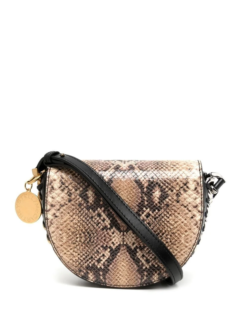 Frayme foldover-top shoulder bag camel brown all-over snakeskin print chain-link trim logo charm foldover top with magnetic fastening internal pocket adjustable shoulder strap POSITIVELY CONSCIOUS: We've partnered with Good On You — an ethical agency that rates how sustainably brands perform across various people, planet and animal welfare criteria. This product comes from a Conscious brand that performs well in relation to their impact on animals. Made in Italy Composition Outer: Artificial Leather 100% SIZE & FIT Measurement DEPTH 3.14 in(8 cm) HANDLE 9.84 in(25 cm) HEIGHT 5.9 in(15 cm) STRAP 9.84 in(25 cm) WIDTH 6.29 in(16 cm)