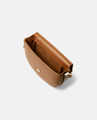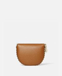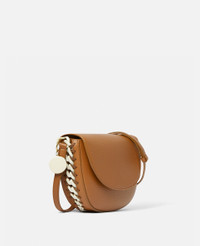Immediately recognisable as a Stella icon – from its vegan Alter Mat fabric to its engraved logo medallion made from zamac – this Frayme flap shoulder bag elevates cruelty-free accessories. The bag can be carried on the shoulder or in the crook of the arm and is consciously framed with an oversized iconic chain, crafted from infinitely recyclable aluminium. - Colour: Tan - Oversized signature contrast cream diamond-cut chain - GOTS-certified cotton lacing - Smooth Alter Mat vegan alternative to leather - Front flap with stainless steel magnetic snap fastening - One shoulder strap - One internal slip pocket - Engraved gold logo medallion charm - Fully lined - Made in Italy Product Care & Fit Advice - Care: Use a soft damp cloth with a small amount of demineralised water (likewise for ironing) and apply to all the material. Leave the bag to dry. Avoid scrubbing to prevent damaging the surface of the bag. As this accessory is made from very delicate fabric, we recommend handling with care and avoiding contact with any sharp objects, jewellery, or rough surfaces. When not in use, always store the item in its protective bag. Please do not machine wash, do not bleach, do not tumble dry, do not iron, do not dry clean. - Composition: Main fabric: 47% polyurethane, 20% bio-based polyurethane, 20% recycled polyamide, 13% polyamide, Lining 50% polyamide, 50% solvent-less polyurethane - Größe: 22 cm x 17,5 cm x 6 cm - Wiegt ca. 0,55 kg - Riemen: Min.: 23 cm / Max.: 35 cm - All unsere Schuhe und Accessoires werden im Rahmen unseres Ethos der Mode ohne Grausamkeit aus lederfreien Materialien hergestellt.