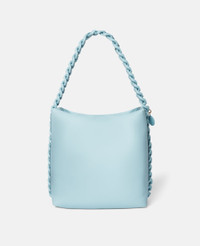 Our Frayme tote bag borrows inspiration from the silhouettes and craftsmanship of furniture. Made from puffy Alter Mat, a butter-soft vegan alternative to animal leather, the tote bag features a popping pastel shade and an iconic oversized chain made from recyclable materials. - Colour: Light Blue - Oversized signature tonal diamond-cut chain - Puffy Alter Mat vegan alternative to leather - One shoulder strap - One internal slip pocket - Metal hook-and-eye fastening - Engraved tonal logo medallion charm - Fully lined - Made in Italy Product Care & Fit Advice - Care: Use a soft damp cloth with a small amount of demineralised water (likewise for ironing) and apply to all the material. Leave the bag to dry. Avoid scrubbing to prevent damaging the surface of the bag. As this accessory is made from very delicate fabric, we recommend handling with care and avoiding contact with any sharp objects, jewellery, or rough surfaces. When not in use, always store the item in its protective bag - Please do not machine wash, do not bleach, do not tumble dry, do not iron, do not dry clean - Composition: Main fabric: 65% polyester, 35% polyurethane, Lining: 56% polyurethane, 44% polyester - Größe: 30,5 cm x 32 cm x 15 cm - Riemen: 30 cm - Wiegt ca. 1 kg - All unsere Schuhe und Accessoires werden im Rahmen unseres Ethos der Mode ohne Grausamkeit aus lederfreien Materialien hergestellt.