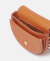 Item 7B0044WP01972887U This Frayme shoulder bag signals a return to our DNA, placing a focus on bridle harness and saddle inspirations while furthering our vegan alternatives. Crafted from soft and smooth Alter Mat, this bag features a double flap design and oversized Falabella chain. This new Frayme silhouette is cleverly drawn together by contrast topstitching and handmade finishes. - Colour: Flamingo - Warm orange-toned tan brown - Smooth Alter Mat vegan alternative to animal leather - Oversized diamond-cut chain around body - Embossed Stella McCartney logo and hardware at front - Contrast single topstitching - One top handle - Adjustable Alter Mat shoulder strap - One internal slip fastening - Two magnetic snap fastening flap compartments - Engraved logo medallion charm - Vegan suede lining - Made in Italy Product Care & Fit Advice - Care: Use a soft damp cloth with a small amount of demineralised water (likewise for ironing) and apply to all the material. Leave the bag to dry. Avoid scrubbing to prevent damaging the surface of the bag. As this accessory is made from very delicate fabric, we recommend handling with care and avoiding contact with any sharp objects, jewellery, or rough surfaces. When not in use, always store the item in its protective bag. - Composition: Main fabric: 70% solvent-less polyurethane, 15% polyamide, 15% polyester, Lining: 50% polyester, 50% polyurethane - Size: 17 x 13 x 8cm - Handle drop: 9.5cm - Strap length: 33-55cm - Weighs approximately 0.56kg