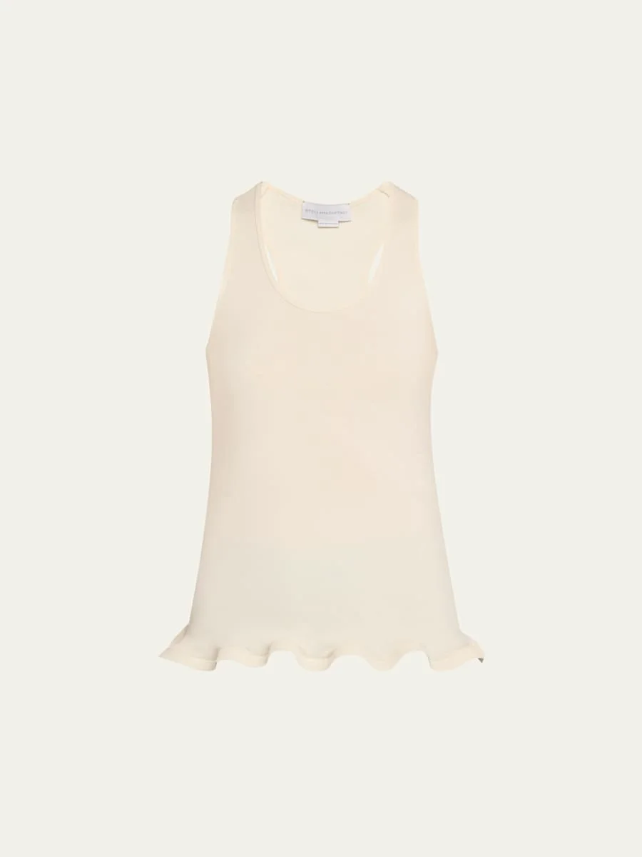 Crafted from cotton ribbed knit, this tank top from Stella McCartney features a frilled hem detail Scoop neckline; racerback Sleeveless Fitted Pullover style Cotton Dry clean Made in Portugal