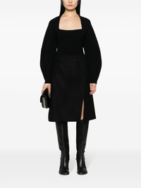front-split felted A-line skirt