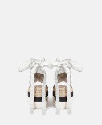 Item 810344E001868101 Platform a bold new aesthetic with these Gaia Alter Mat platform espadrilles. Handcrafted in Spain from smooth, metallic VEGEA – a vegan alternative to animal leather made using grape waste – these espadrilles have a peeptoe design with cut-outs at the side for a pared-back, minimal look. - Colour: Silver - Recycled polyester upper - Branded ribbon - Hand-stitched jute rope - Layered platform - Serrated micro sole - Open-toe - Slips on - Self-tie fastening Product Care & Fit Advice Spot clean only with soft damp cloth Spot clean only with soft damp cloth