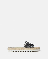 Item 810341E001751300 - Colour: Black/Ecru - Midnight black - Abstract moth wing embroidery Bananatex® canvas upper - Front bad - Angular toe - Braided jute midsole - Microfoam saw-edge sole - Made in Spain Product Care & Fit Advice - Care: Spot clean only with soft damp cloth - Composition: Upper: 100% Bananatex® abaca, Ribbon: 100% post-consumer recycled polyester, Lining: 76% bio-based polyurethane, 24% viscose, Sole: 100% jute - 10mm flat heel - Fits true to size - All of our shoes and accessories are made from non-leather materials in keeping with our cruelty-free ethos.