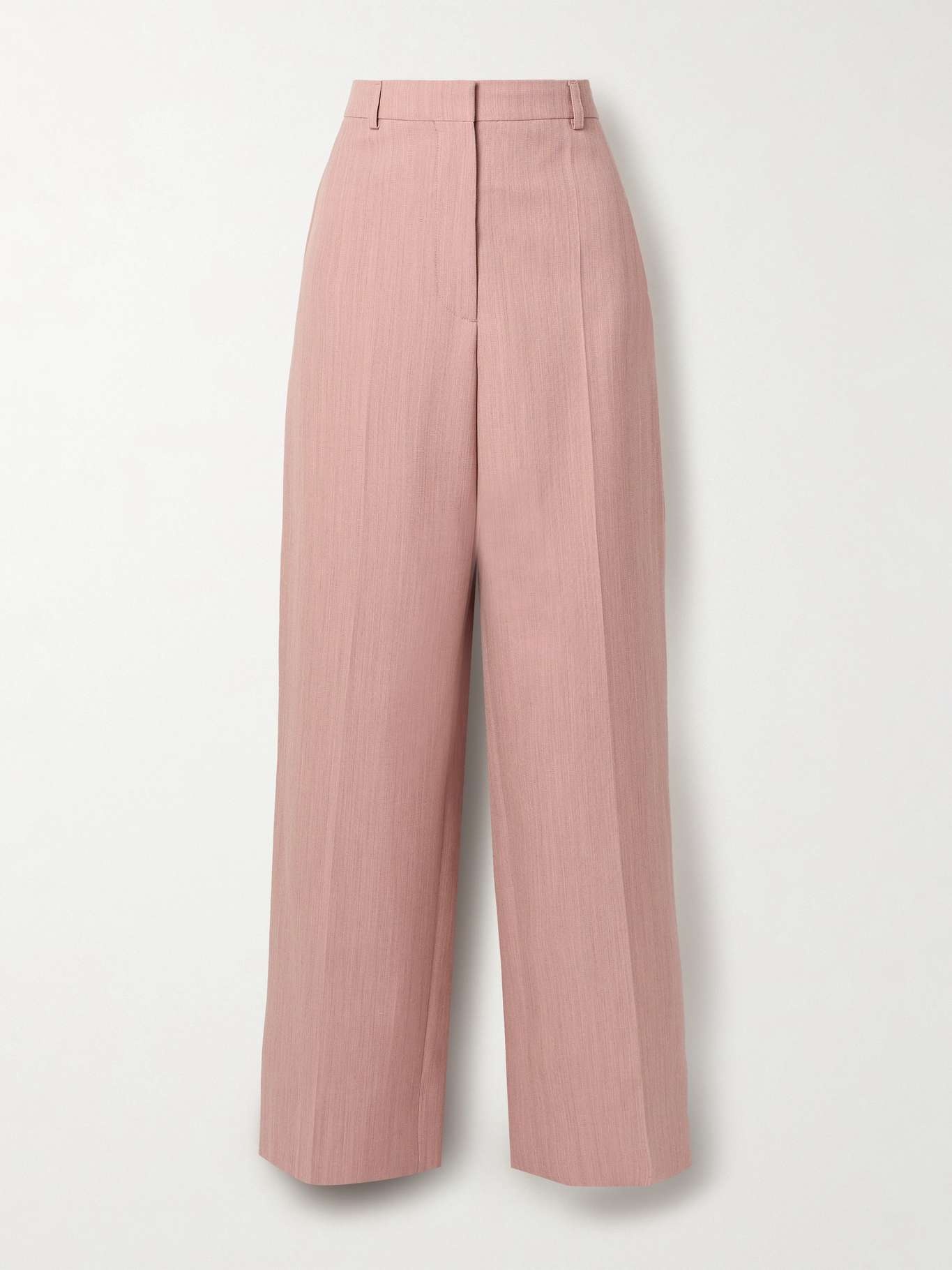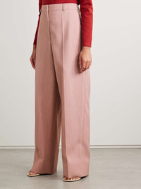 EDITORS'NOTES The dusty-pink shade of Stella McCartney's pants is sure to liven up your tailoring collection. Part of a suit with the matching blazer, they're made from grain de poudre wool and have pressed creases and dramatic wide legs. SIZE & FIT Model measurements: - Fits large to size, take one size smaller than normal - Mid-rise, cut for a wide-leg fit - Mid-weight, non-stretchy fabric - Model is 175cm/ 5'9", normally wears an IT 40 and is wearing an IT 38 - Bust: 81cm/ 32" - Waist: 65cm/ 26" - Hip: 90cm/ 35" DETAILS & CARE - Dusty-pink grain de poudre wool - Concealed hooks, button and zip fastening at front - 100% wool - Dry clean