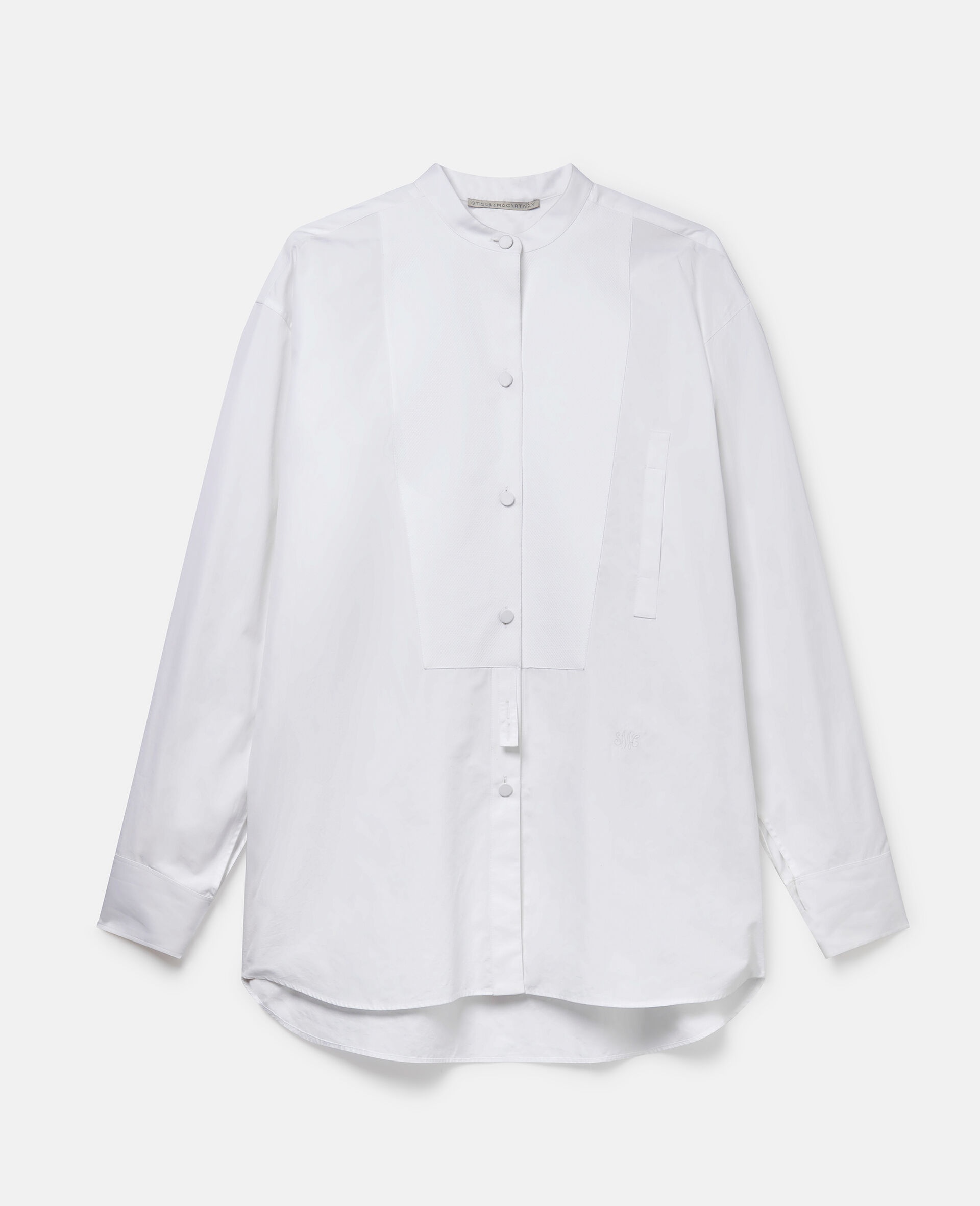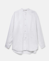 Summer 2024 is a study in fluidity, family and freedom, inspired by the shared wardrobes of Stella McCartney’s parents. This shirt is the perfect example; cut from soft, organic cotton, it’s shaped to a loose-fitting silhouette that’s topped with a classic grandfather collar and tuxedo-inspired bib panelling. Pair it with denim jeans for a look that blurs the lines between masculinity and femininity, casualwear and black tie. - Colour: White - Pure white - Grandfather collar - Tuxedo bib panel at front - Long sleeves - Button fastening