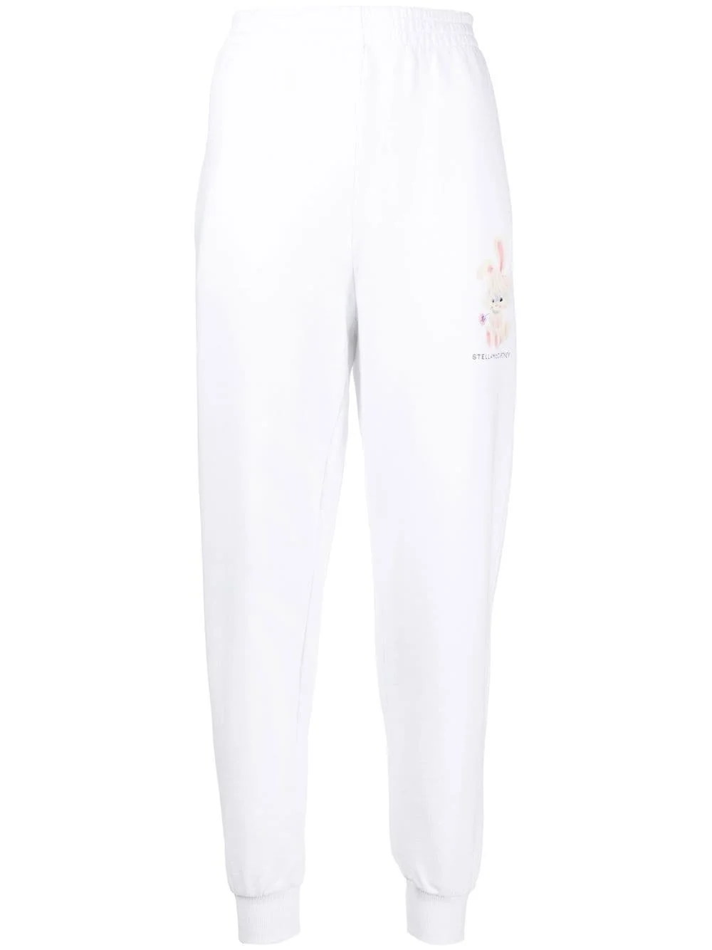 graphic-print tapered track pants Highlights - Optical white - Cotton - Elasticated waistband - Graphic print to the front - Elasticated ankles - Tapered leg Imported Composition Cotton 100% SIZE & FIT Model measurements Height 5 ft 10 in(1.78 m) Bust/Chest 33.07 in(84 cm) Hips 33.85 in(86 cm) Waist 25.19 in(64 cm) FittingInformation This piece fits true to size. We recommend you get your regular size Designed to be loose over the leg with a fitted waist and hem Made with a mid-weight fabric Washing instructions Machine Wash