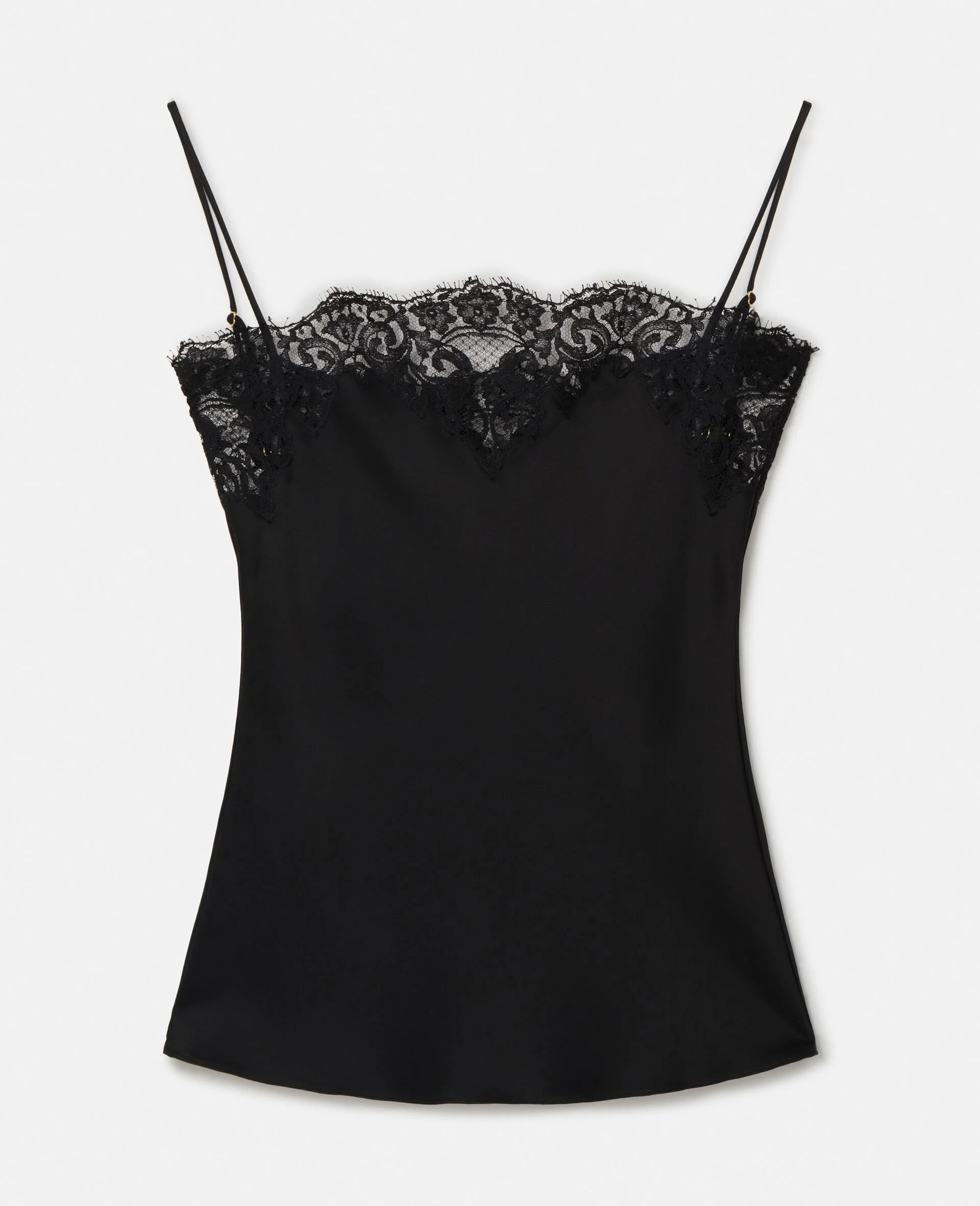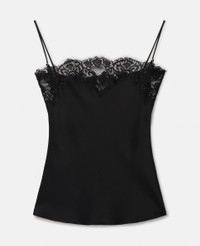 Item 6T01253AU3091000 Framed by a delicate guipure lace exclusively created for Stella McCartney, this cami top lends evening attitude to any look. The cami is responsibly made from forest-friendly viscose-blend satin with a contemporary straight neck and extra-thin spaghetti straps. - Colour: Black - Midnight black - Forest-friendly viscose-blend satin - Guipere lace trim at neckline - Straight neck - Spaghetti straps - Concealed zip fastening - Made in Italy Product Care & Fit Advice - Care: Dry clean only - Composition: 64% acetate, 36% viscose - Fits true to size - Designed for a slim fit - Lightweight, non-stretch fabric - Model is 5ft 10.5in./1.79m, is a size UK 6 and wears a size IT 40 (US 4-6/UK 8/FR 36)