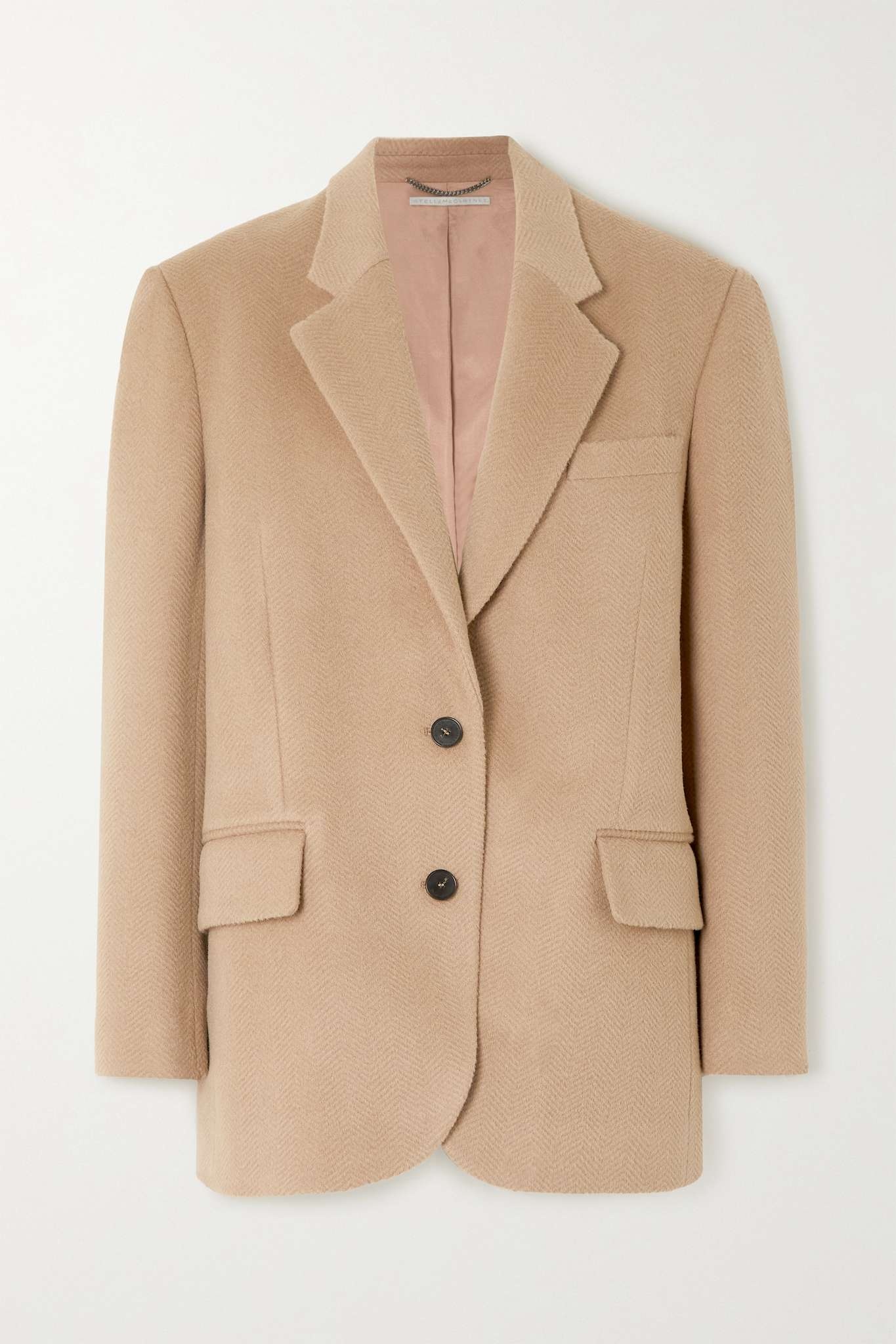 EDITORS'NOTES For Fall '22, Stella McCartney's tailoring is inspired by the cool, retro styles worn by her father and his bandmates in The Beatles. This blazer is skilfully cut from herringbone wool and fitted with lightly padded shoulders to inspire confidence. It'll look chic layered over a slip dress. SIZE & FIT - Fits true to size, take your normal size - Designed for a loose fit - Internal shoulder pads - Mid-weight, non-stretchy fabric - Model is 177cm/ 5'10" and is wearing a size XSmall DETAILS & CARE - Tonal-sand wool - Button fastenings along front - 100% wool; lining: 52% viscose, 48% cotton - Dry clean