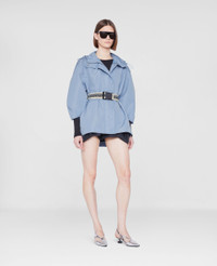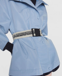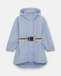 Spring 2022 is a time for renewal and a return to (night)life, made for Stella women who live in the moment and are conscious of tomorrow. The collection blends the nostalgic with the futuristic, connecting the experimental aesthetics of Y2K music subcultures and club kids to the digital youth of today. - Color: Dusty Blue - Hooded Jacket - Adjustable drawstrings - Three-quarter length sleeves - Elasticated removable logo belt - Concealed zip fastening - Clip button closure, slant pockets Product Care & Fit Advice - Care: Dry Clean - Composition: Main materials 100% Recycled Polyester, Details 55% Polyamide, 25% Polyester, 20% Elastane - Fits true to size - Designed for a regular fit - Mid-weight, non-stretchy fabric - Model is 5ft 10in/1.78m, is a size UK 8 and wears a size IT 40 (US 4/UK 8/FR 36)