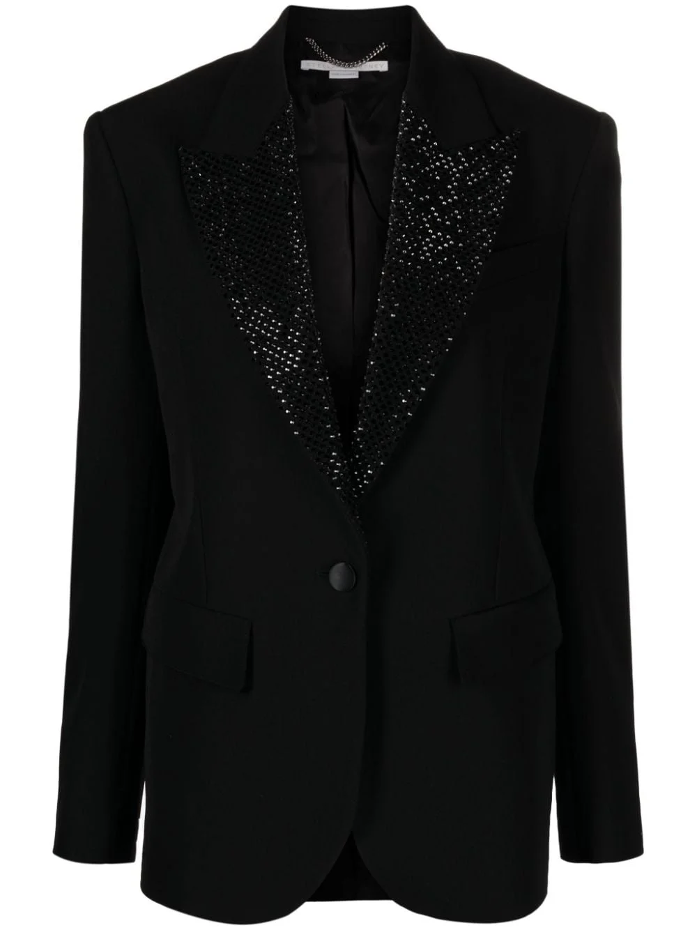 Hotfix crystal-embellished blazer Highlights - Black - Wool - Textured finish - Crystal embellishment - Peak lapels - Front button fastening - Shoulder pads - Long sleeves - Buttoned cuffs - Chest welt faux-pocket - Two front flap faux-pockets - American rear vent - Straight hem - Logo-jacquard lining Imported Composition Outer: Wool 100%, glass 100%, Polyester 93%, Spandex/Elastane 7% Lining: Viscose 60%, Cupro 40% SIZE & FIT Model measurements Height 5 ft 10 in(1.78 m) Bust/Chest 31.49 in(80 cm) Hips 35.03 in(89 cm) Waist 23.62 in(60 cm) FittingInformation Designed for a slim fit that sits just away from the body offering a close yet comfortable fit The internal shoulder pads offer a structured shape Made from a midweight fabric This piece fits true to size – take your usual size Washing instructions Dry Clean Only