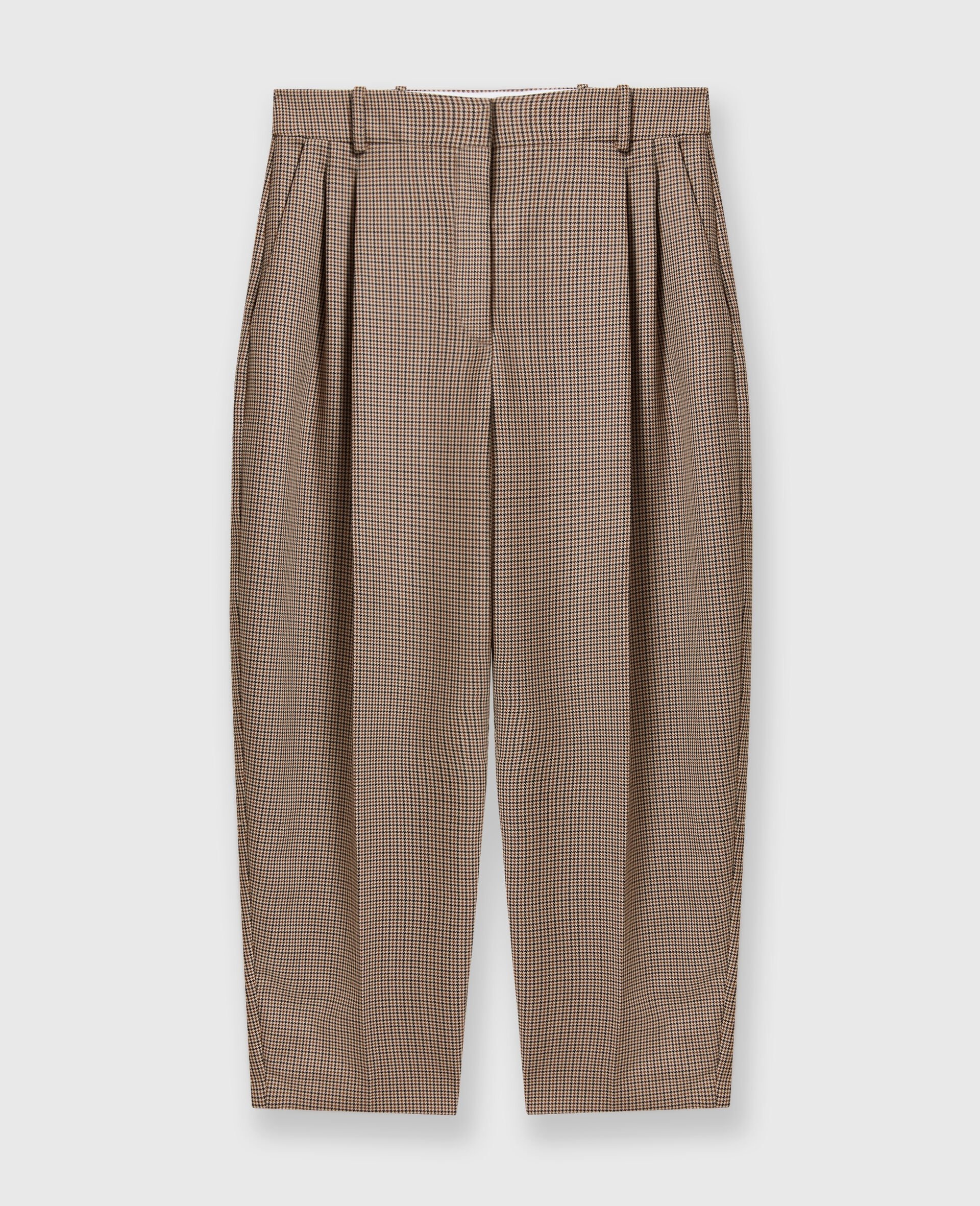 Item 5919643FJ7012203 These houndstooth pants are perfectly cut from RWS-certified ethically sourced wool, exemplifying Stella’s honed skills in Savile Row tailoring. Intentional pleats stream from the high-rise waistline down two pristinely executed balloon legs, and finish at cropped hems. Pair them with the coordinating blazer. - Color: Brown - High-rise - Houndstooth pattern - Balloon leg - Flat waistband - Belt loops - Two pleats beginning at each hip - Two side pockets - Concealed zipper closure - Cropped hems - Made in Romania Product Care & Fit Advice Care: Dry clean only Composition: 100% Wool Fit: Regular fit Sizing: Take your usual size Midweight, non-stretch fabric