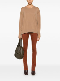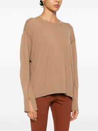 fine-knit sweater Highlights - Ochre brown - Virgin wool - Fine knit - Crew neck - Drop shoulder - Long sleeves with split cuffs - Straight hem Imported Composition RWS Virgin Wool 100% SIZE & FIT Model measurements Height 5 ft 9 in(1.76 m) Bust/Chest 31.88 in(81 cm) Hips 35.43 in(90 cm) Waist 24.8 in(63 cm) FittingInformation Designed to be unstructured, offering a loose fit throughout Made with a midweight knit, this piece offers some stretch