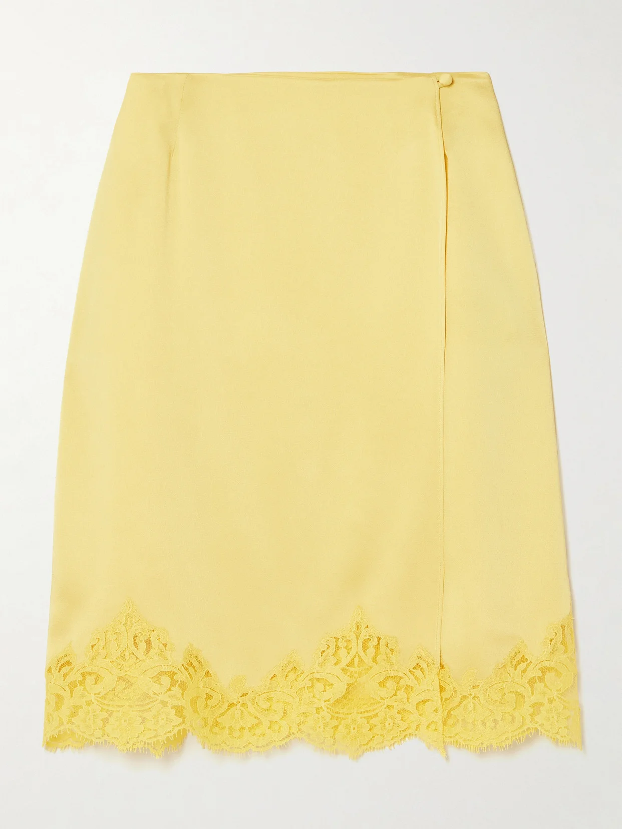 Iconic Wrap-effect Lace-trimmed Satin Skirt