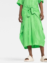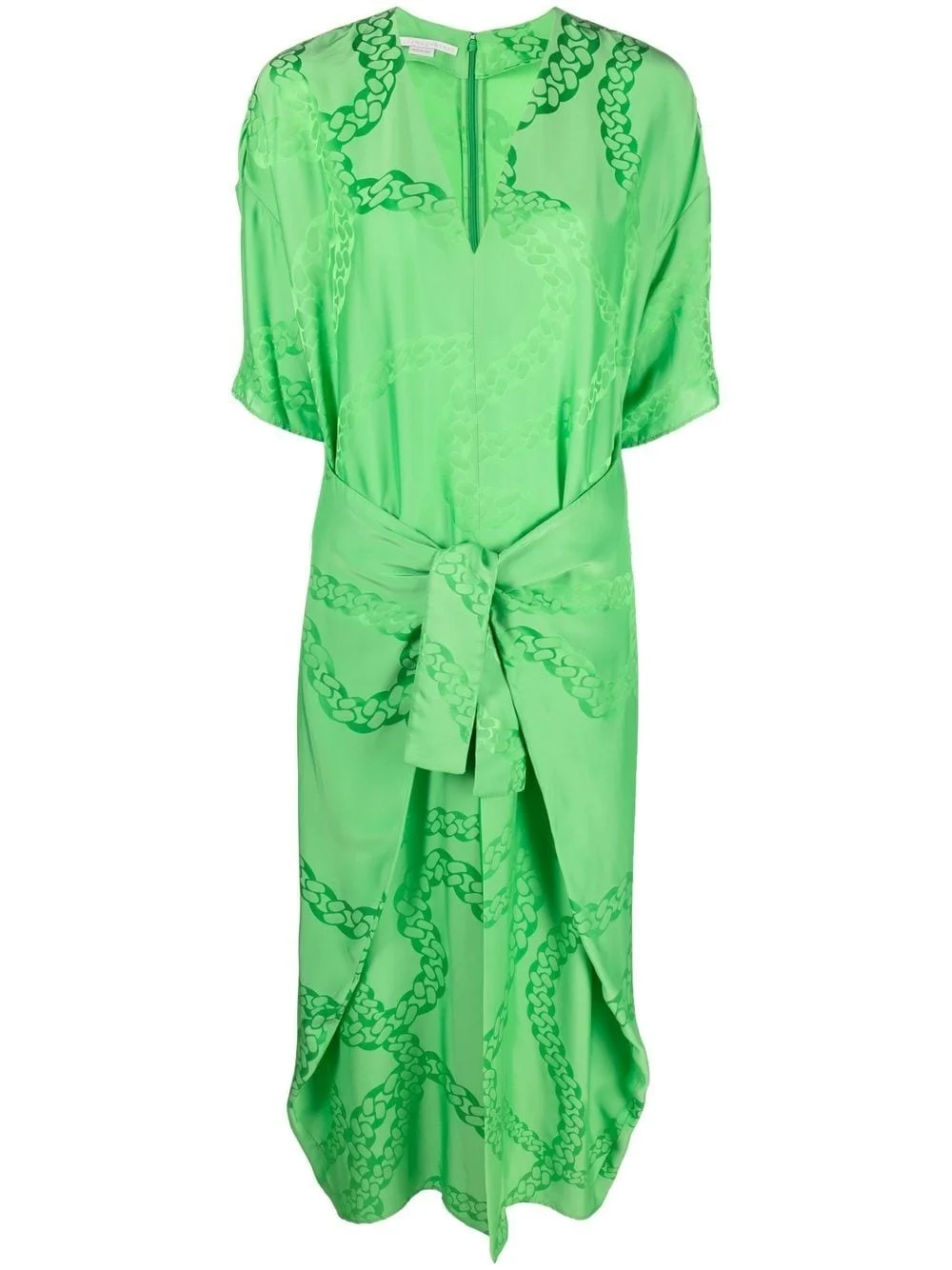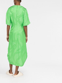 jacquard maxi dres Highlights - Bright green - Flared - Full jacquard - V-neck - Rear zip fastening - Front tie fastening - Half-length sleeves - Mid-length Made in Italy Composition Viscose 53%, Silk 47% SIZE & FIT Model measurements Height 5 ft 11 in(1.8 m) Bust/Chest 31.49 in(80 cm) Hips 36.61 in(93 cm) Waist 24.4 in(62 cm) FittingInformation This piece fits true to size. We recommend you get your regular size Designed for a close fit at the bust, waist and hips Made with a mid-weight non-stretch fabric Washing instructions Dry Clean Only