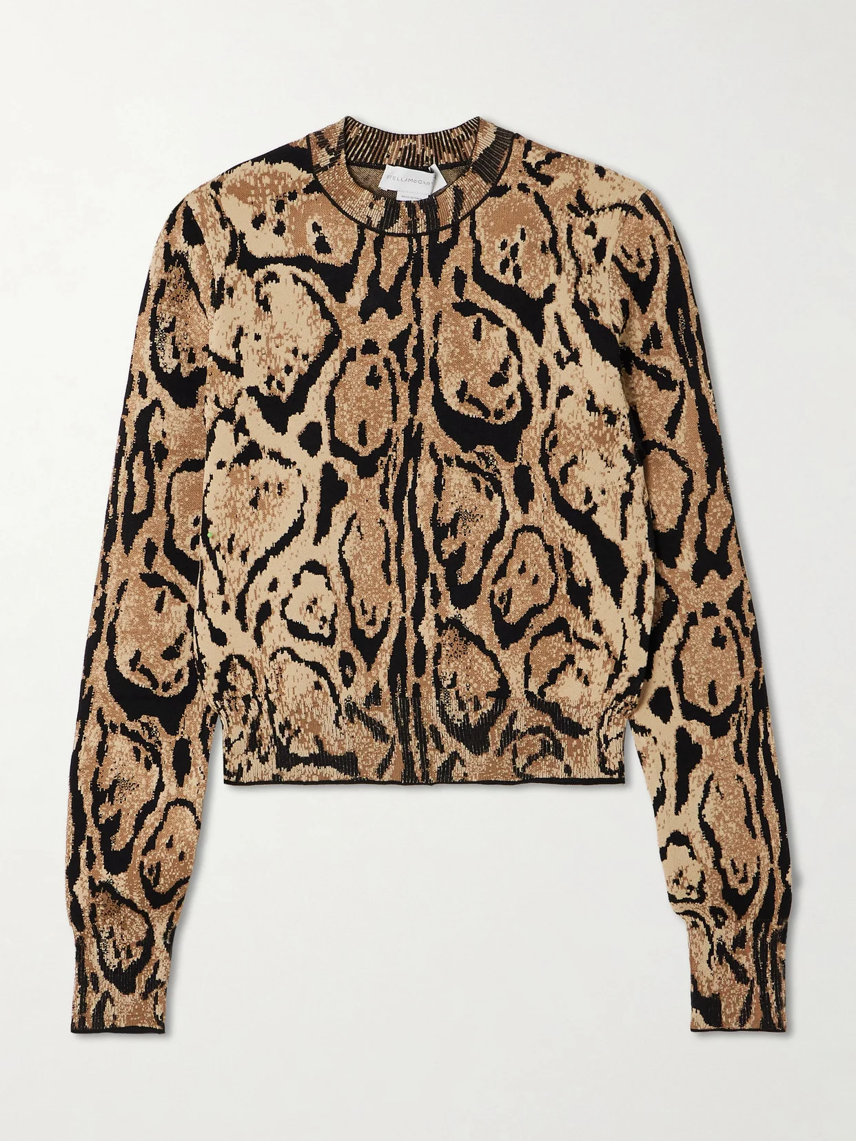 Stella McCartney's 'Cloud' sweater is designed for a slim fit and jacquard-knitted with bold leopard spots. In keeping with the brand's commitment to lower-impact materials, it's blended with a generous amount of certified rayon viscose. Lower-Impact Materials. This product is made using at least 50% lower-impact materials or ingredients. Find out more about our NET SUSTAIN criteria here.