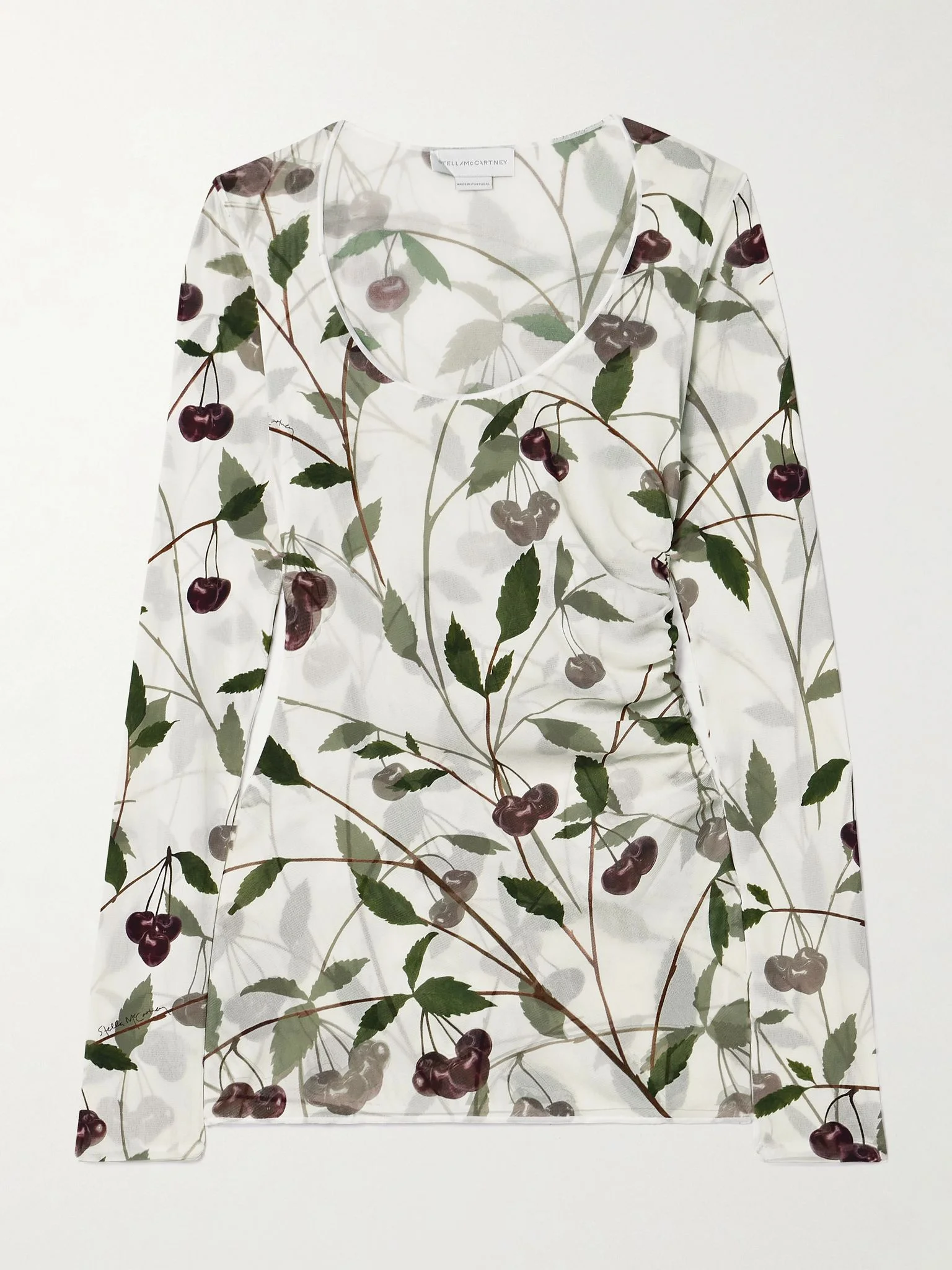 Stella McCartney's top is printed with an array of cherry tree stems - a pattern that can be seen throughout the brand's Resort '25 collection. Part of a set with the matching skirt in our edit, it's cut from lightweight stretch-mesh that's gently ruched at the sides. Size & Fit - Fits true to size, take your normal size - Designed for a close fit - Lightweight, stretchy fabric - Model is 177cm/ 5'10" and is wearing a size Small Details & Care - Multicolored stretch-mesh - Slips on - 100% polyamide - Machine wash