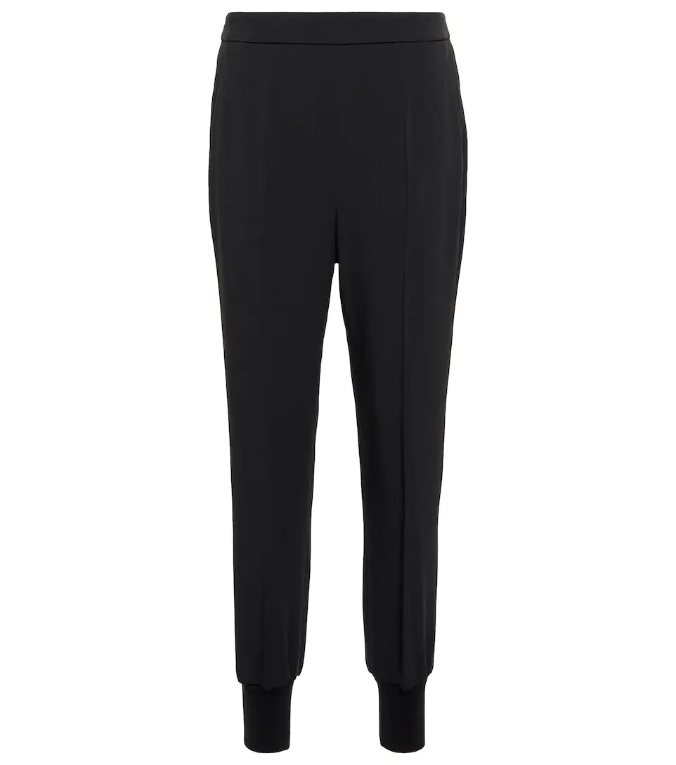 Stella McCartney's Julia trousers are an effortless staple item as the sports-inspired silhouette easily translates between office-ready and casual dressing. Made from a blend of environmentally-friendly viscose, this high-rise style has an elastic waist and hem for sublime comfort. Product Details - Elasticated ankle cuffs - Trim: 100% cotton - Material: 4% elastane, 32% acetate, 64% viscose - Designer color name: Black - Made in Bulgaria - Pockets: side slit pockets - Elasticated waistband - Care instructions: dry clean - Item number: P00704515 Size & Fit - Fits large to size - we recommend trying one size smaller - Elasticated waist - Mid-weight material - Tapered leg - Inseam length approx: 73cm-28.5" - The model seen in the picture is 178cm-5'10" and wearing a size IT 38