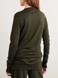 Stella McCartney's Pre-Fall '25 collection is inspired by effortless details from Paul and Linda's shared wardrobes. Knitted from certified wool, this sweater has a layered hem that's knotted to look as if another crewneck is tied around your waist. Lower-Impact Materials. This product is made using at least 50% lower-impact materials or ingredients. Find out more about our NET SUSTAIN criteria here. Size & Fit - Fits true to size, take your normal size - Designed for a relaxed fit - Mid-weight knit - Model is 177cm/ 5'10" and is wearing a size Small Model measurements: - Bust: 85cm/ 33” - Waist: 66cm/ 26” - Hip: 92cm/ 36” Details & Care - Army-green wool - Slips on - 100% virgin wool - Dry clean