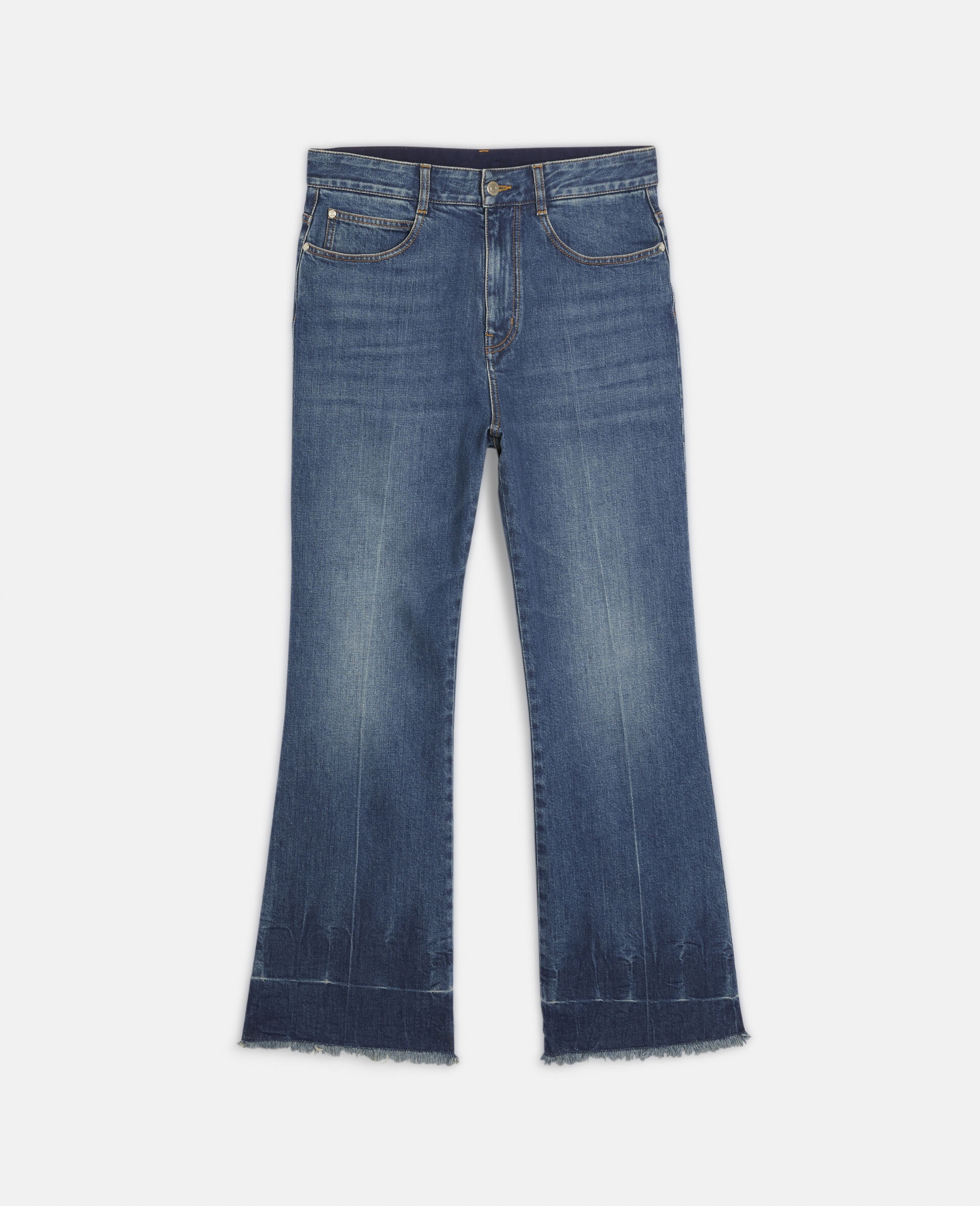Autumn 2022 is made for an ambitious Stella McCartney woman – desiring to be her best self in all aspects of her life, reflecting her dynamic moods and ageless attitudes. We revisit classic statement pieces that every wardrobe needs, bringing them into the now and elevating them with signature Stella twists - Colour: Vintage Dark - Denim jeans - Mid-waisted, kick flare - Classic five pockets - Concealed zip fastening and button closure - Frayed hem detail - Made in Italy Product Care & Fit Advice - Care: Machine Wash at 30ºC - Composition: 98% Cotton, 2% Elastane; Lining: 65% Polyester, 35% Cotton; Details: 75% Polyester, 25% Viscose - Fits true to size - Designed for a regular fit - Mid-weight, slightly stretchy fabric