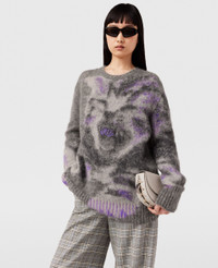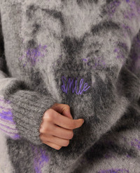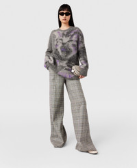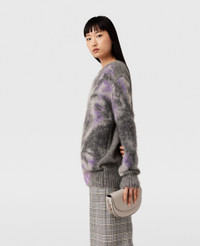 Item 6K08283S25098490 Looking to the animal kingdom for inspiration is nothing out of the ordinary for Stella McCartney. This season, she looks not only to birds, but their feline friends. This kitten, seen roaring on this soft, slouchy sweater spun from RWS-certified wool, is embroidered with ‘smile’ on its mouth – you can’t help but do so when wearing it. - Color: Multicolor - Gray, white and purple - Kitten graphic on front - Crewneck - Long sleeve - Ribbed trims - ’Stella’ embroidered on front - Slips on - Made in Italy Product Care & Fit Advice Care: Dry clean only Composition: Main fabric: 70% alpaca wool 10% wool 20% polyamide Size: Fits true to size Designed for a slouchy fit Midweight, slight stretch fabric