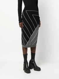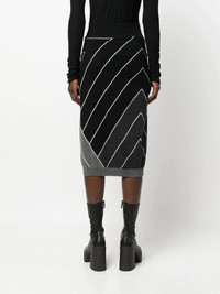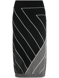 knitted geomertric pattern skirt Spun in Italy from delicate virgin wool, this black midi skirt from Stella McCartney is given a playful and intricate twist for a signature look. Boasting a geometric motif throughout, this piece sits high at the waist for an elongating silhouette and is cut for a below-the-knee length. Made in Italy Composition Virgin Wool 100%, Wool 91%, Polyamide 8%, Spandex/Elastane 1% SIZE & FIT Model measurements Height 5 ft 10 in(1.77 m) Bust/Chest 32.28 in(82 cm) Hips 35.03 in(89 cm) Waist 25.19 in(64 cm) FittingInformation This piece fits true to size. We recommend you get your regular size Cut for a slim fit Made with a mid-weight stretch fabric Washing instructions Hand Wash
