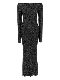 embellished knit off-the-shoulder dress Highlights - Black - Knit - Off-the-shoulder - Long sleeves - Embellishment Made in Italy Composition Polyamide 52%, Wool 48% Washing instructions Read Manufacturer Guidelines