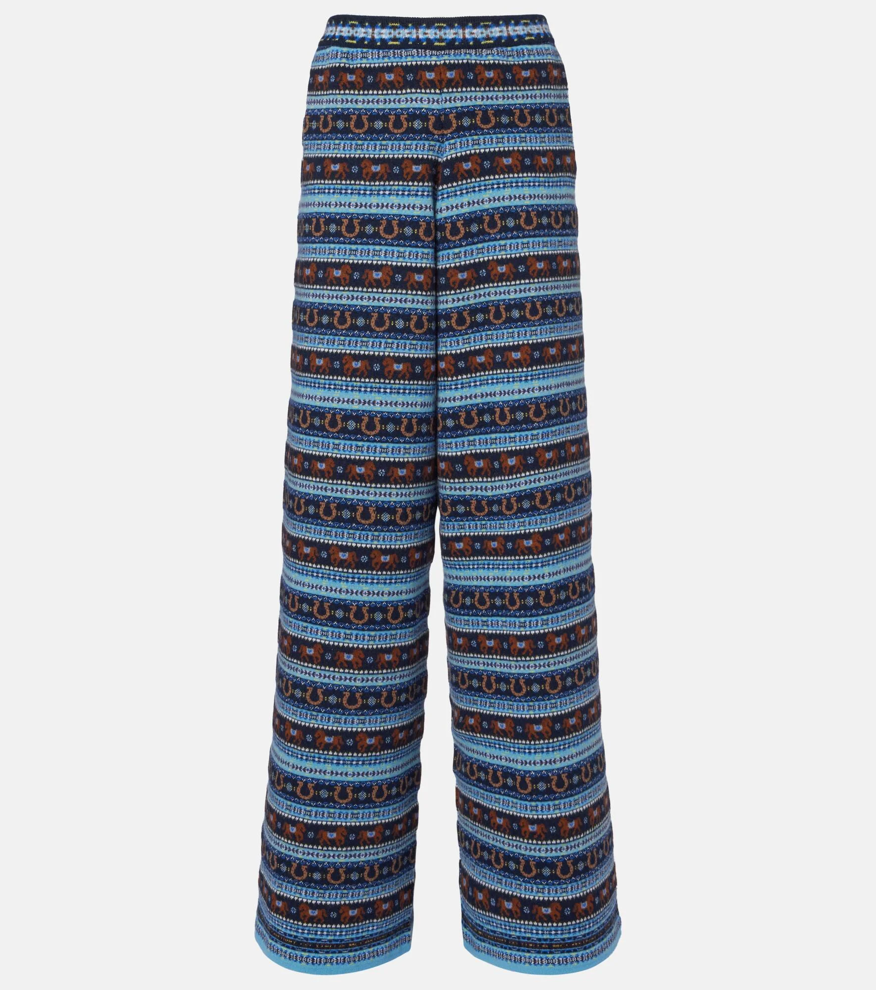 Stella McCartney’s pared-back approach to design has garnered a cult following among women who crave clean lines. Knitted in Italy from virgin wool, these straight pants feature all-over stripes with western-inspired patterns. Product Details - Material: 100% virgin wool - Care instructions: machine wash at 30 degrees - Made in Italy - Designer color name: Multicolor 2 - Item color: multicolor - Trim: 100% virgin wool - Pocket lining: 52% viscose, 48% cotton - Elasticated waistband - Pockets: side slit pockets - Item number: P01105035 Size & Fit - True to size - Elasticated waist - Slightly stretchy fabric - Wide-leg - Sits low on the hips - The model seen in the picture is 178cm-5'10" and wearing a size XS