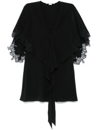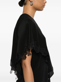 lace-detailing blouse Highlights - Black - Knot detailing - Rear cape insert - V-neck Made in Italy Composition Silk 100%, Polyamide 100% SIZE & FIT Model measurements Height 5 ft 10 in(1.78 m) Bust/Chest 32.67 in(83 cm) Hips 35.43 in(90 cm) Waist 23.22 in(59 cm) FittingInformation Designed for a slim fit that sits just away from the body offering a close yet comfortable fit Made from a lightweight non-stretch fabric
