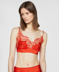 - Colour: Scarlet Red - Triangle Bra - Spaghetti straps - Hook fastening at the back - Lace detailing on the cups - Made in: Italy Product Care & Fit Advice - Colour: Scarlet Red - Triangle Bra - Spaghetti straps - Hook fastening at the back - Lace detailing on the cups - Made in: Italy - Fits true to size - Designed for a regular fit - Lightweight, non-stretchy fabric - Model is 5 ft 11 in/1.80 m, is a size UK 10 and wears a size IT 40 (US 4/UK 10/FR 36)