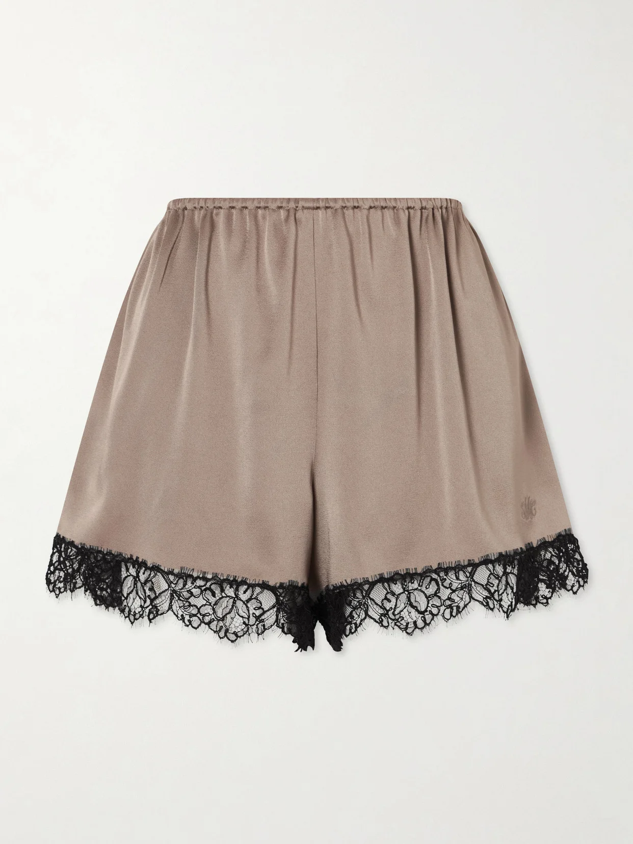 Lace-trimmed Embroidered Satin Shorts