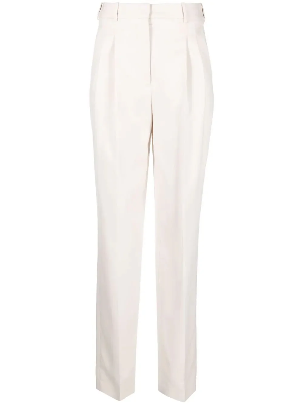 Lara tailored trousers Having shadowed Savile Row tailor Edward Sexton after graduating, Stella McCartney developed her signature style. Realised in an off-white hue, these Lara tailored trousers are detailed with front pleats and two rear welt pockets. Highlights - Off white - Tailored design - High-waisted - Straight leg - Belt loops - Zip fly fastening - Two side slit pockets - Two rear welt pockets Made in Italy Composition Viscose 55%, Wool 45% SIZE & FIT Model measurements Height 5 ft 10 in(1.77 m) Bust/Chest 29.92 in(76 cm) Hips 34.25 in(87 cm) Waist 23.62 in(60 cm) FittingInformation This piece fits true to size. We recommend you get your regular size Designed to be fitted at the waist and hips, loose over the leg Made with a mid-weight non-stretch fabric Washing instructions Dry Clean Only